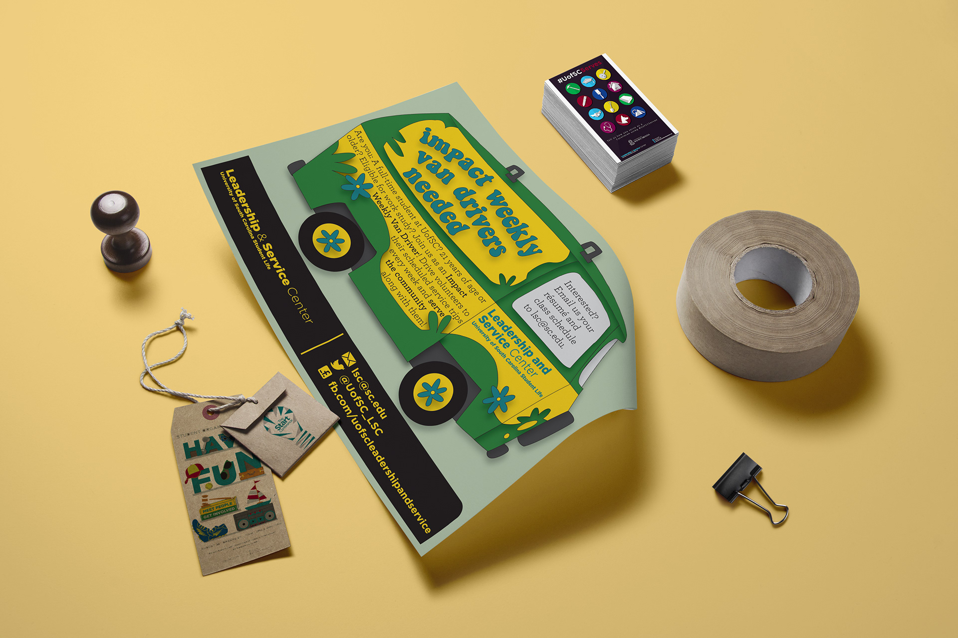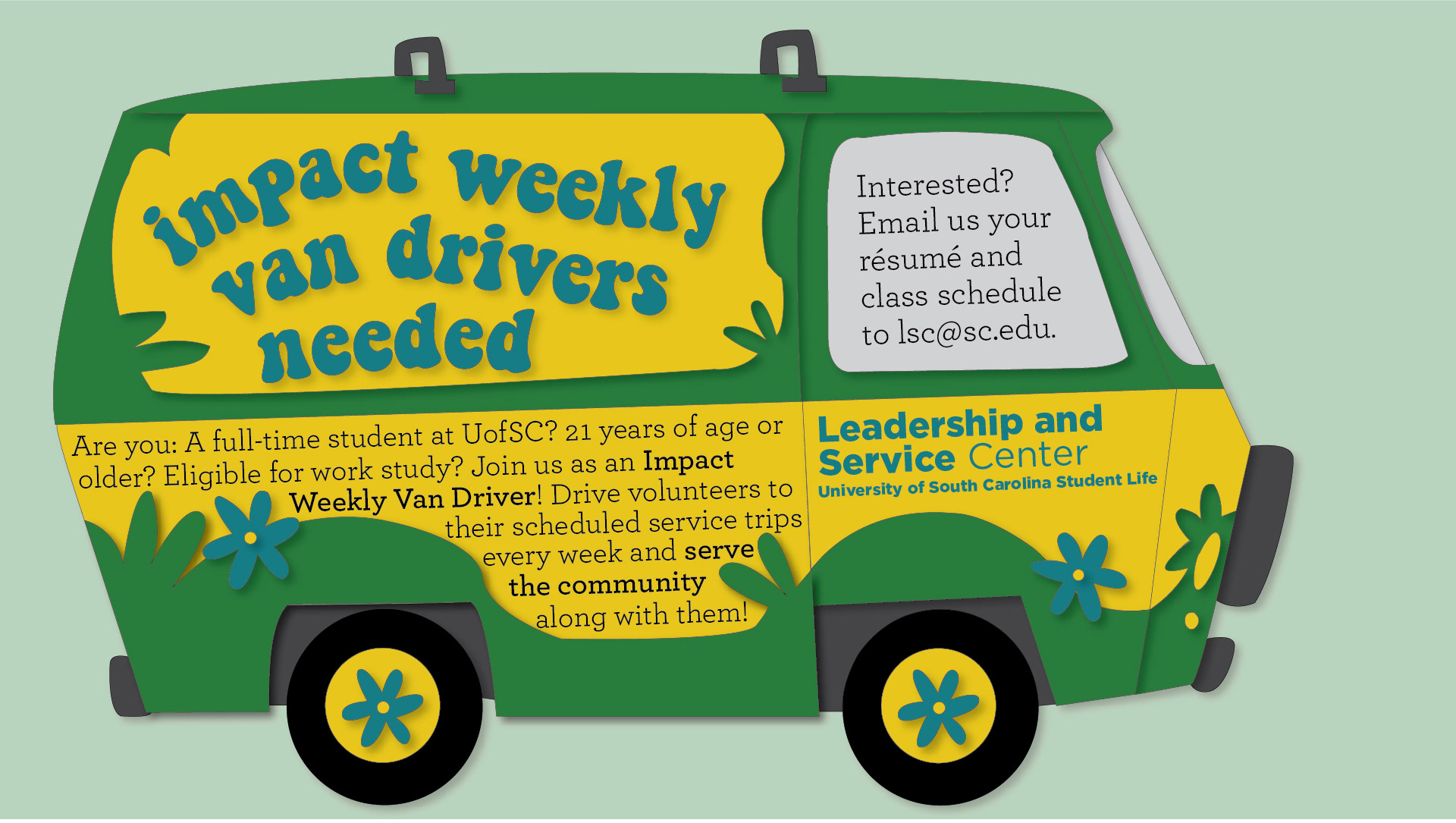 A digital flyer designed to catch student's attention and gather volunteers for service projects.