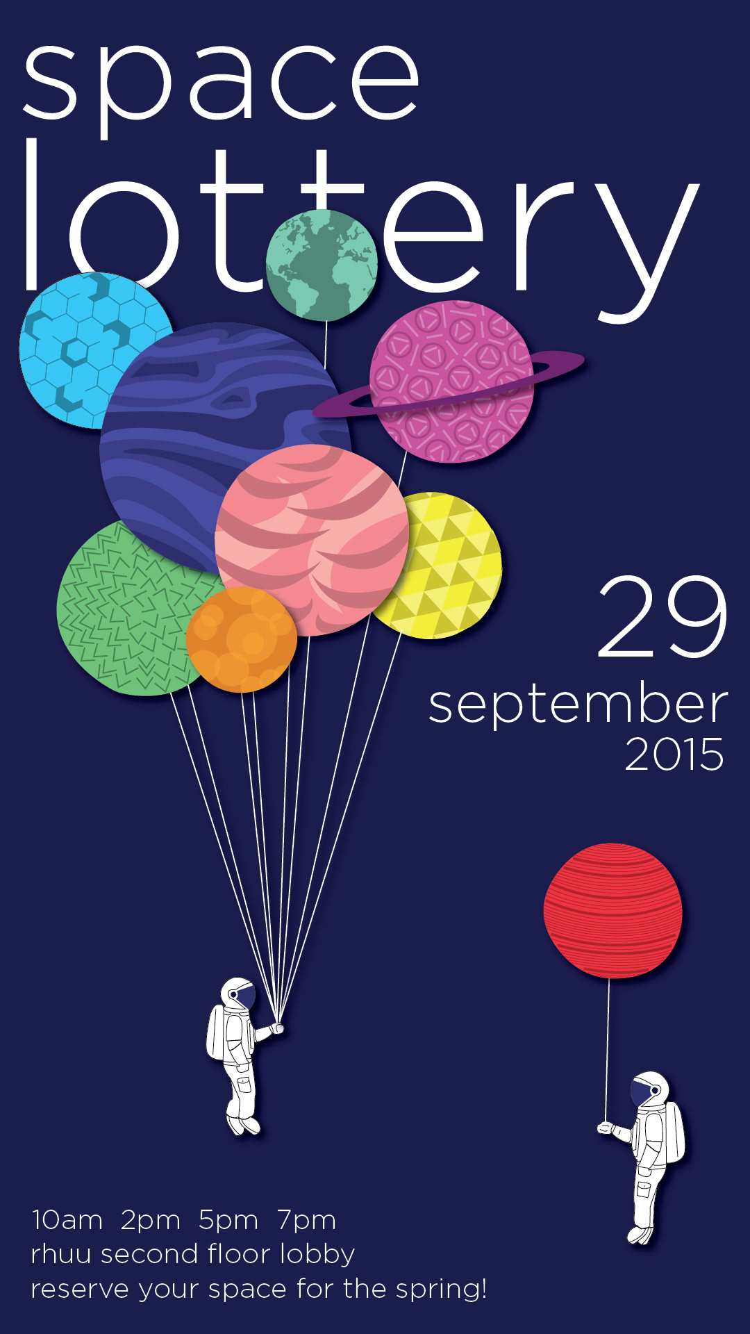 A poster designed to promote the lottery system for student organizations to win space on campus for meetings.